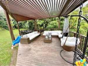 Beautiful deck overlooking the lush surroundings – perfect for relaxing or hosting